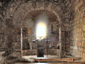 Solidement ancrée dans et sur la roche la chapelle de Rochegude avec son clocher à deux baies se trouve sur le chemin de Saint Jacques de Compostelle et reçoit la visite de nombreux pélerins. |