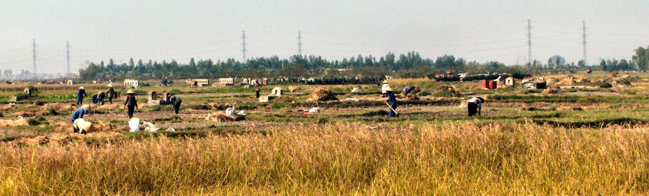 qui est très peu mécanisé, au centre ci dessous, battage décorticage du riz.